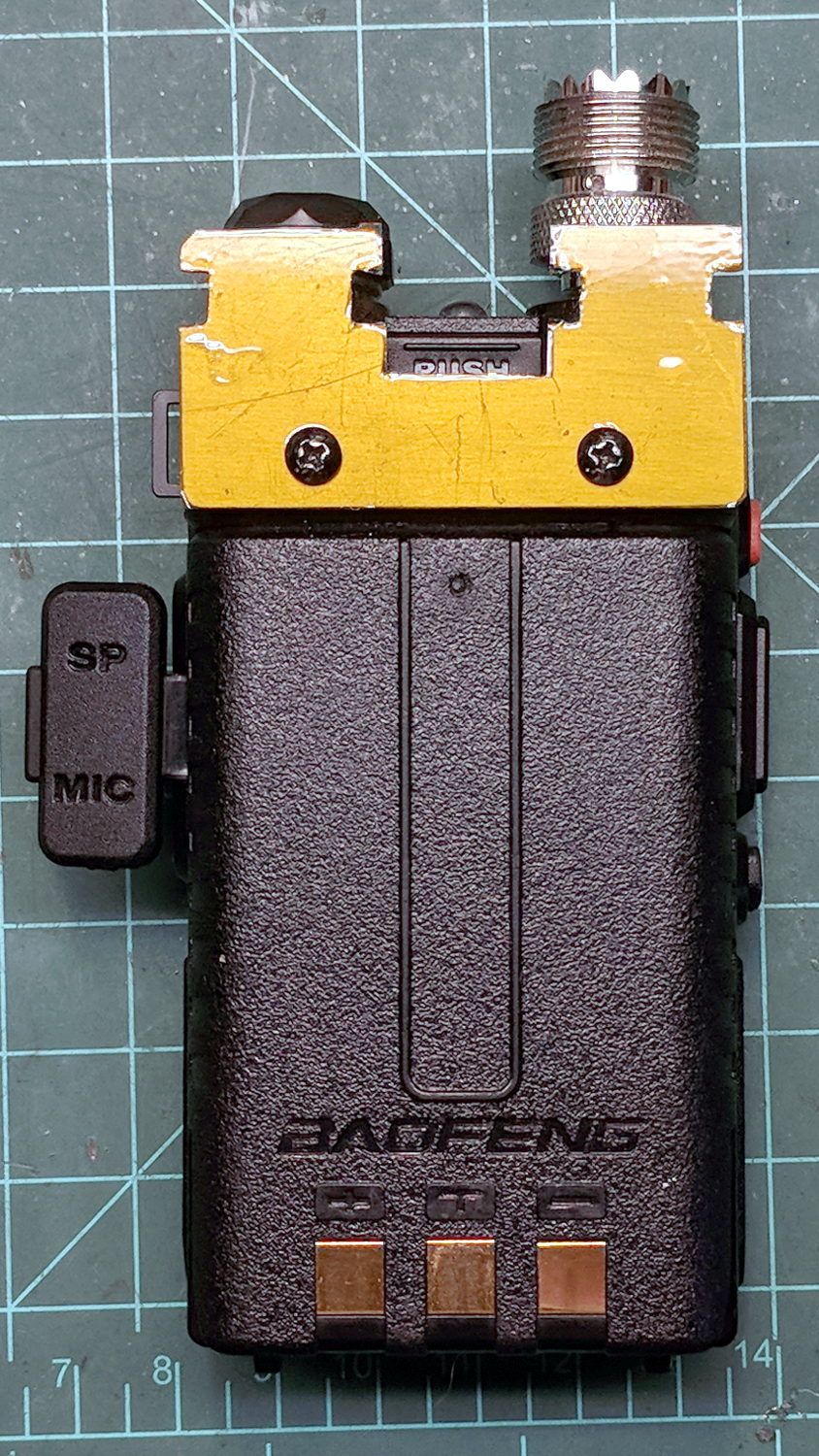 The general idea is to anchor all the cables to a plate on the back of the radio, interconnect as needed, then “protect” everything with tape. The pocket clip has M2.5 screws on 26 mm (not 25.4, honest) centers, so that’s how it started: