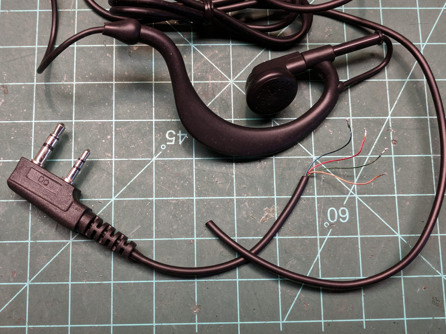 Rather than 3D print and hand-wire a plug adapter to fit the socket around the Baofeng UV-5 mic and speaker jacks, I cheated: