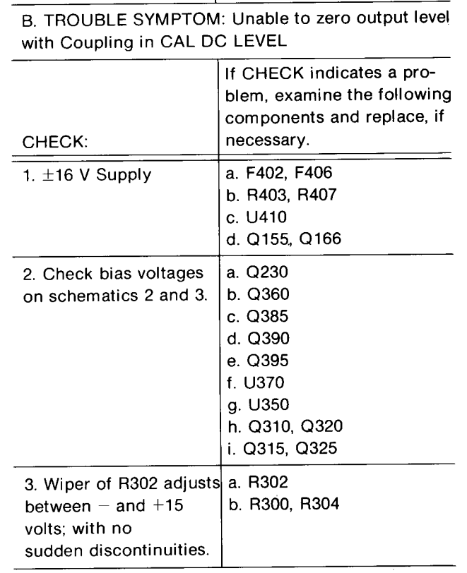 Because I didn’t understand the circuitry, I check the supply voltages, then started at U350, the differential amp rubbing the DC level knob against the input signal, and worked outward in both directions (clicky for more dots):