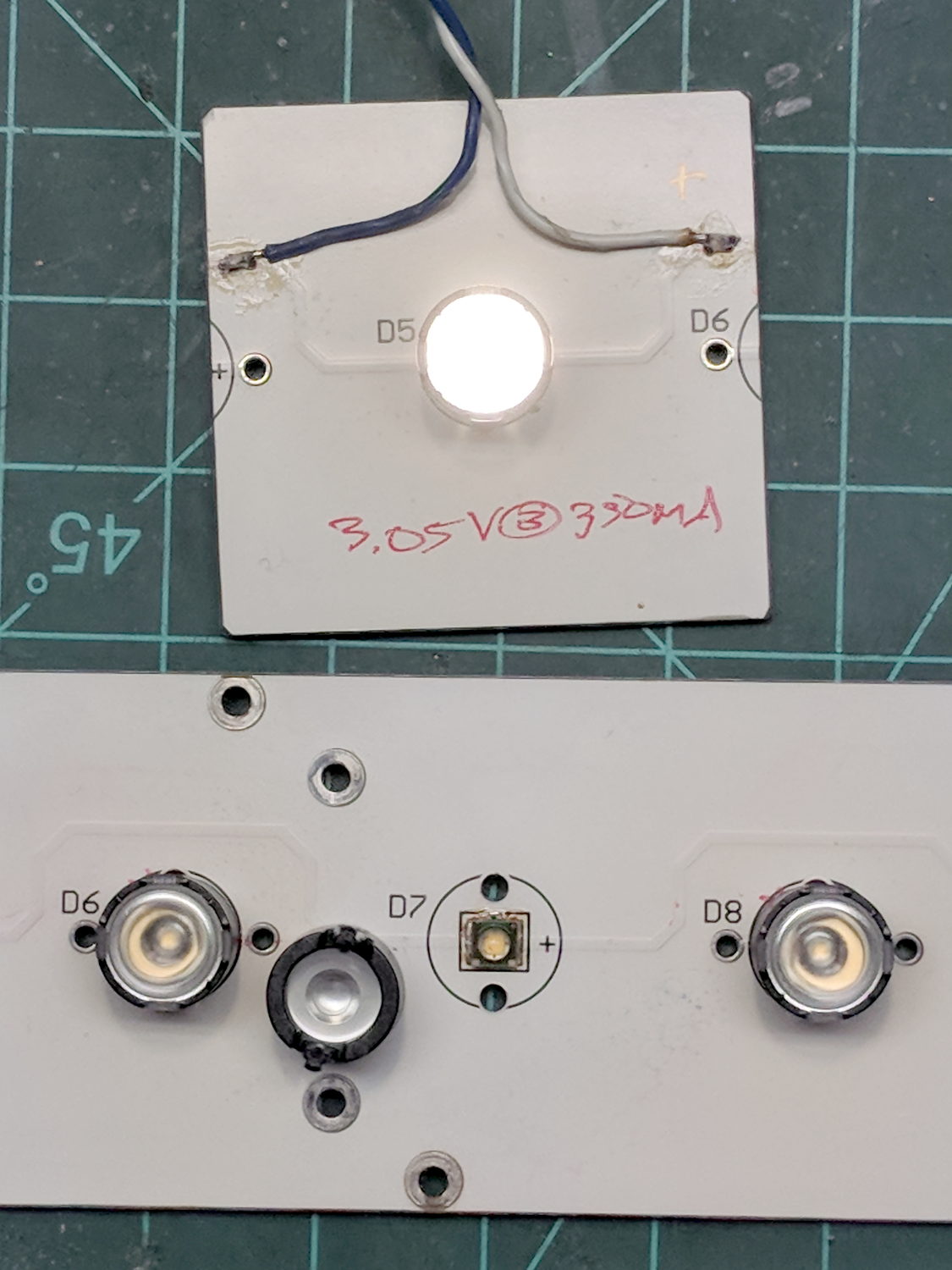 I bandsawed the last working LED from the gutted donor panel: