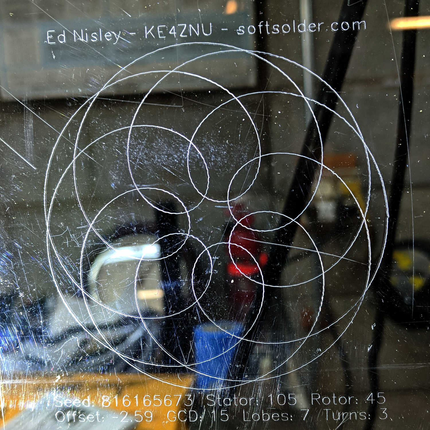 It’s surprisingly good for a first attempt. Slowing down should help reduce the wobbles in arcs and corner. I tried it at 1 mm depth = 250 g force and that’s just too much; you want the least little scratch on the surface.