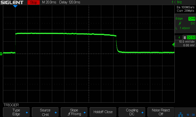 Which, diodes being the way they are, raised the LED current to nearly 400 mA (100 mA/div):