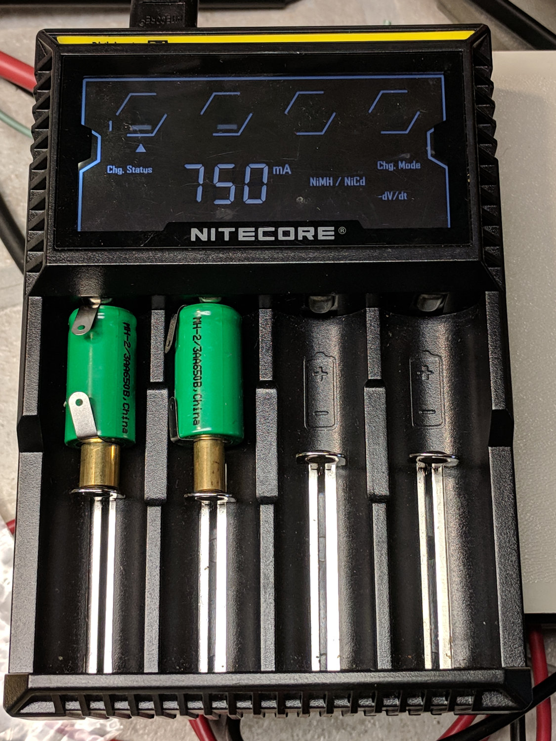 While I was dismantling the case, I charged the last two new-old-stock NiMH cells: