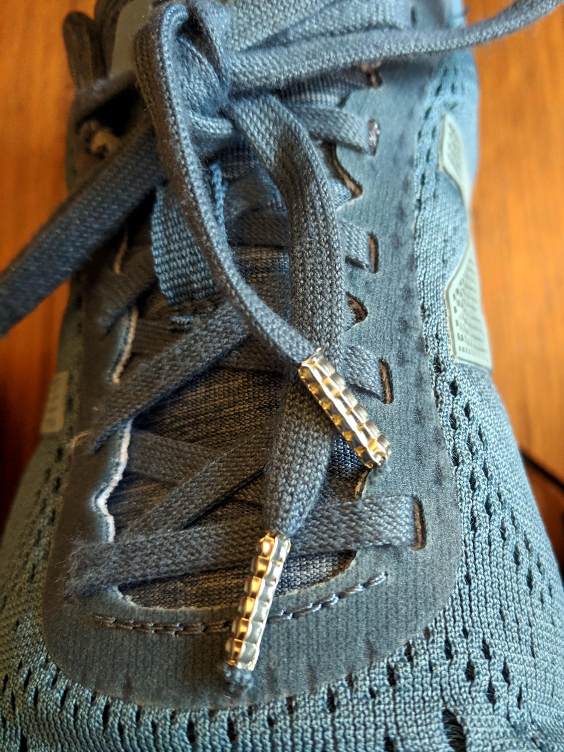 A new pair of shoes arrived with extravagantly long laces requiring shortening. Years ago, I found heatshrink tubing completely unequal to the task, so I deployed Real Metal: