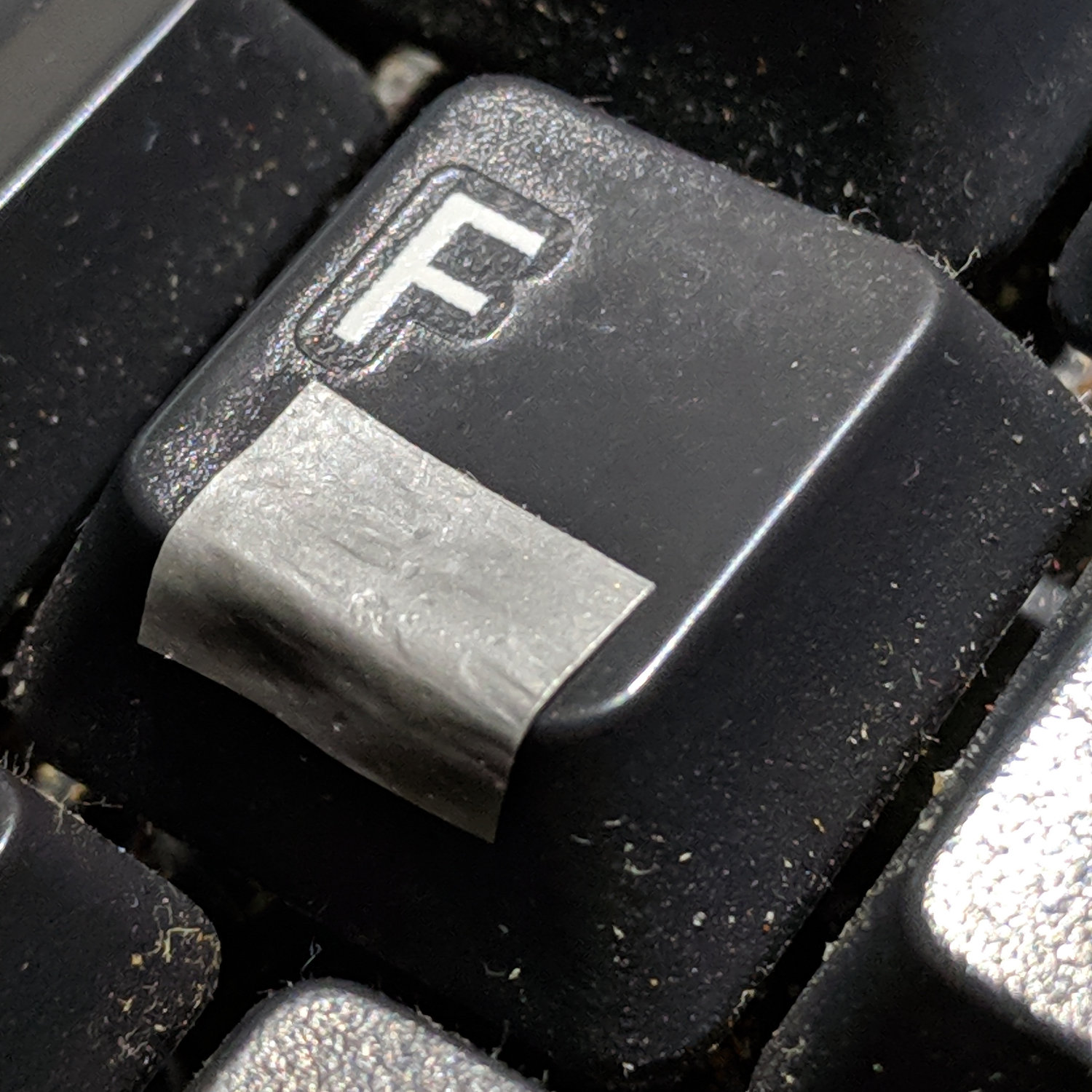 The ultimate fix will likely involve a dab of epoxy, but a duct tape snippet should show me how much of a bump my fingers need to find the home keys without conscious thought: