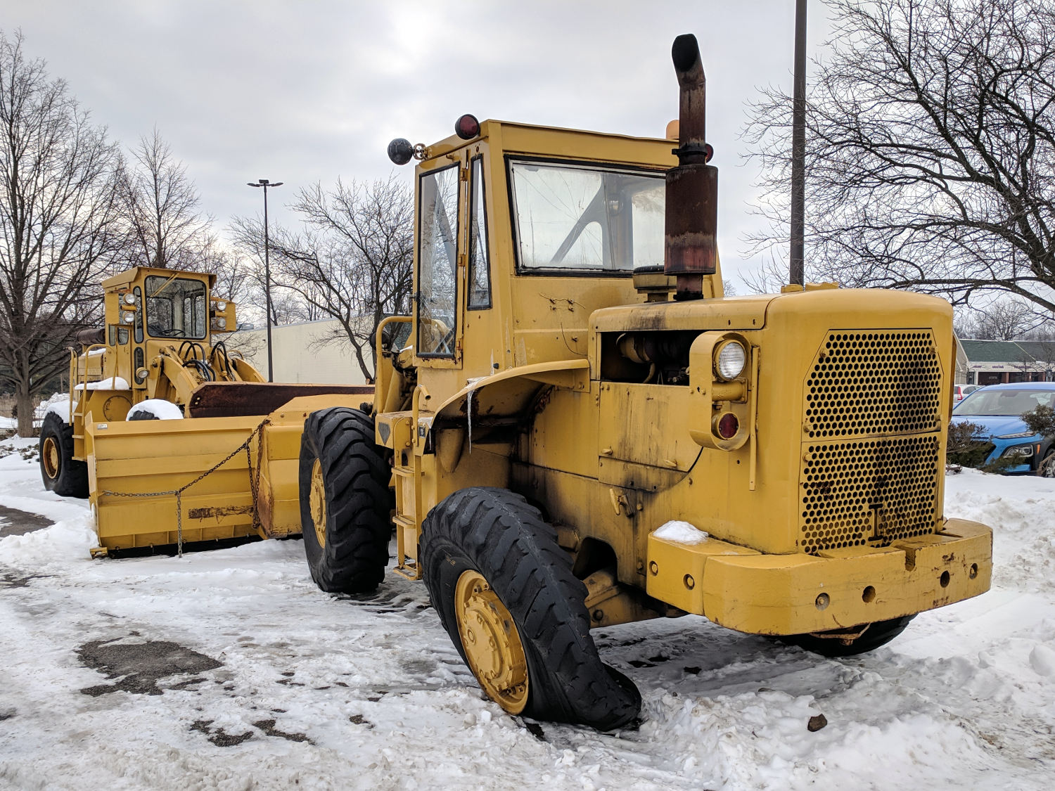 The local yellow iron inventory spends most of the winter snoozing in shopping mall parking lots, waiting to clear the snowfall. It’s been a light year so far, which is fine with me.