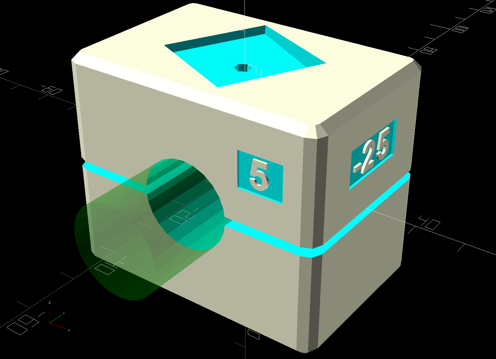 | translate([0,0,(EmbossDepth – Protrusion)/2]) // recess bottom legend | |