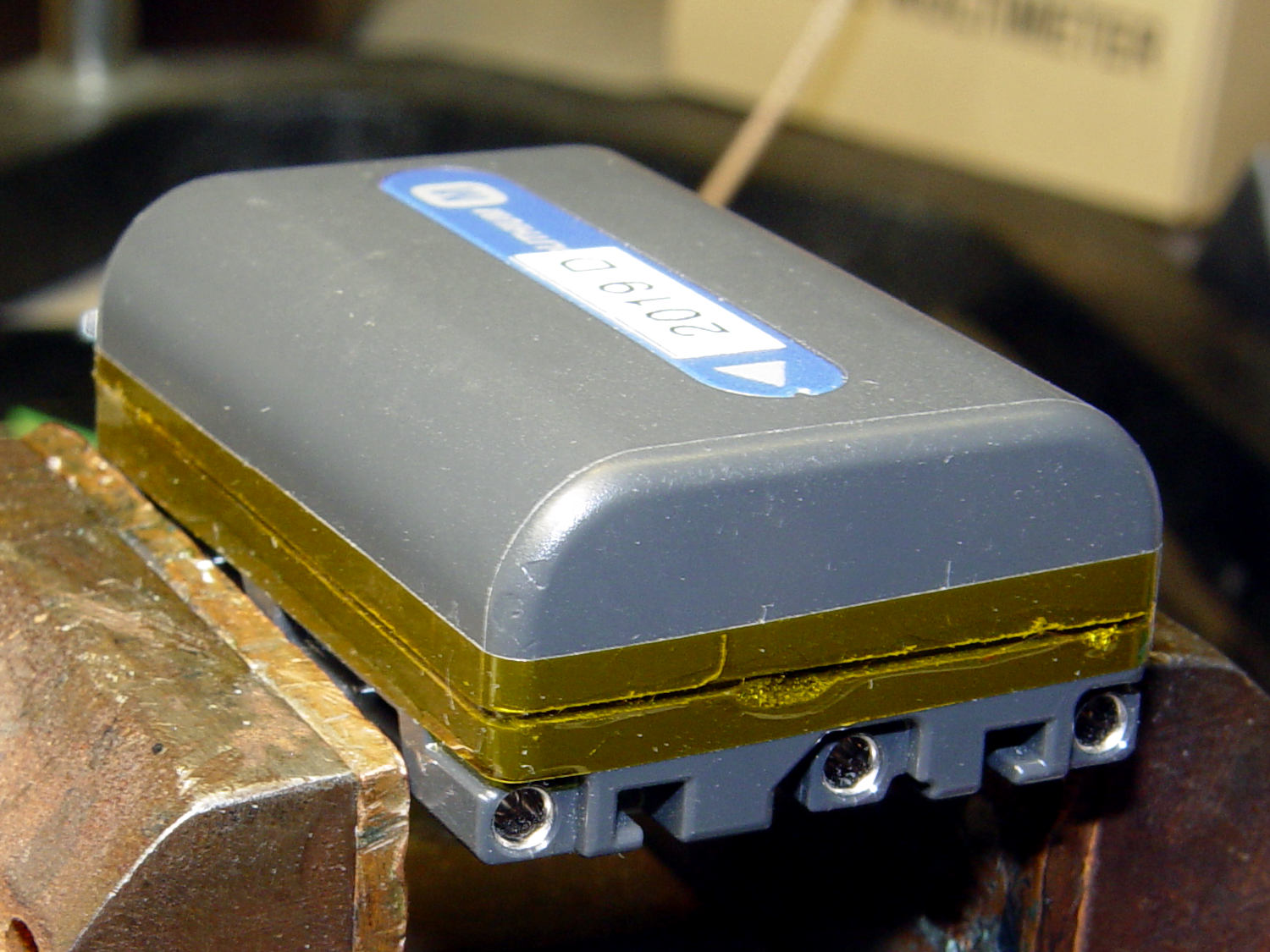 The two oldest batteries (OEM 2003 A and OEM 2003 B) have new identities to suit their new innards: 2019 E and 2019 F. The DOA eBay battery retains its 2019 D label after the rebuild, as there’s little room for confusion.