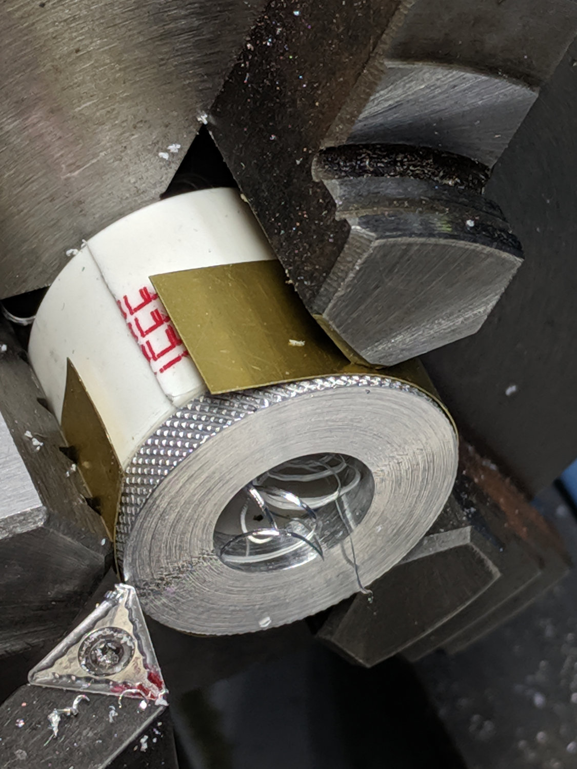 Although it’s not obvious, I cleaned up the OD before applying the knurling tool: