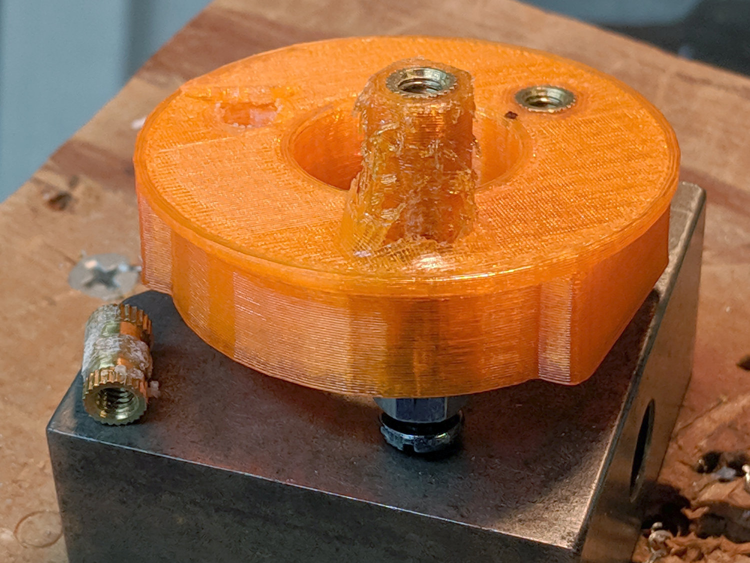 Bottom line: a dab of epoxy anchors an insert far better than the 3D printed structure around it can support!