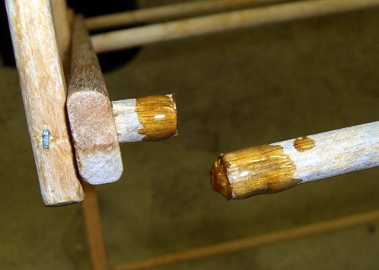 Mary picked up a rather well-used wooden-dowel clothes drying rack at a tag sale for essentially nothing; one of the dowels was missing. That’s easy enough to fix, as I have a stash of dowels from what seems to be another rack of the same type on my wood stockpile…