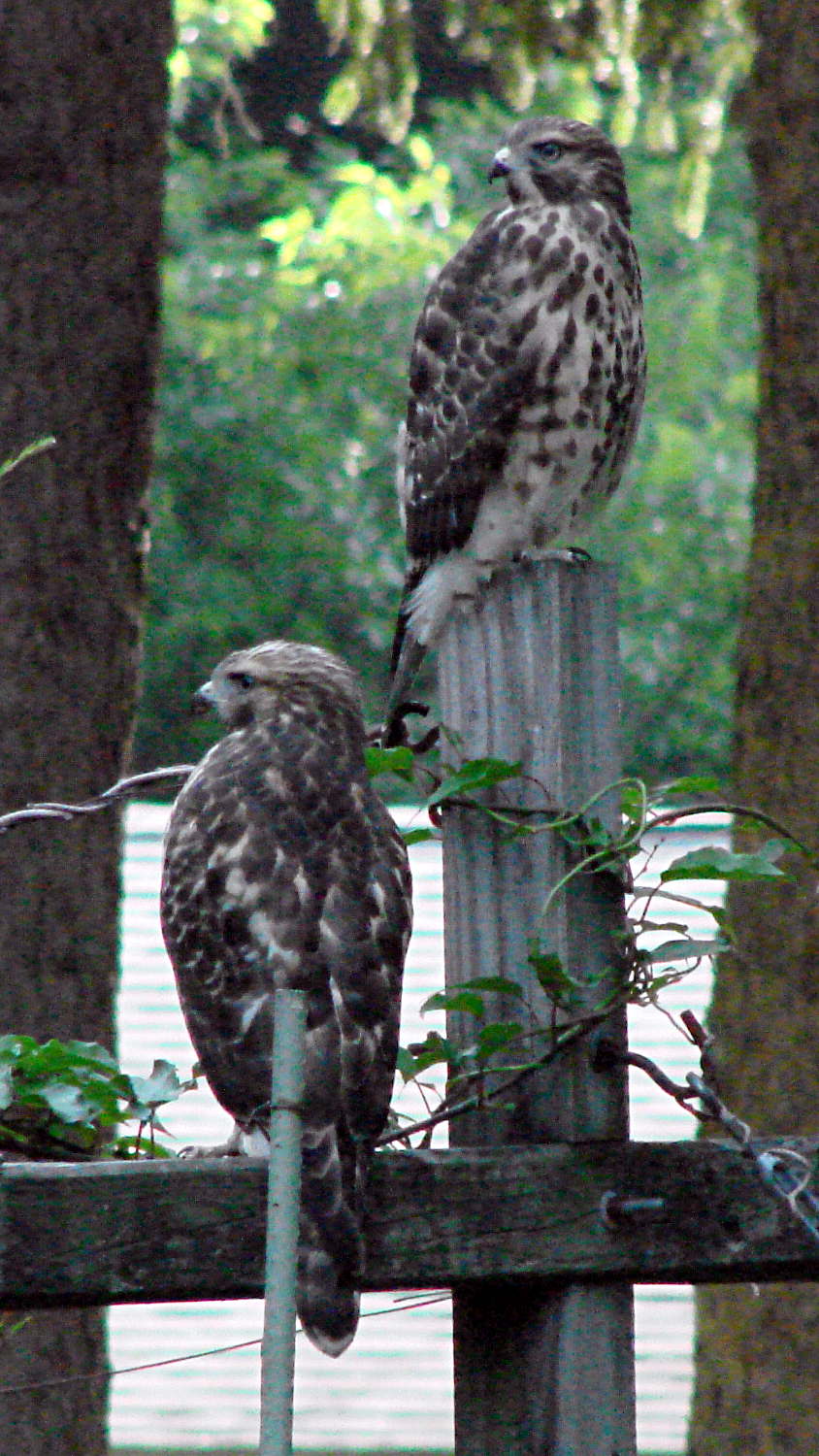 “Our” Cooper’s Hawks have long since flown off, although one occasionally swoops through the yard on an urgent mission. I took this picture on an early July morning, when they were still being companionable: