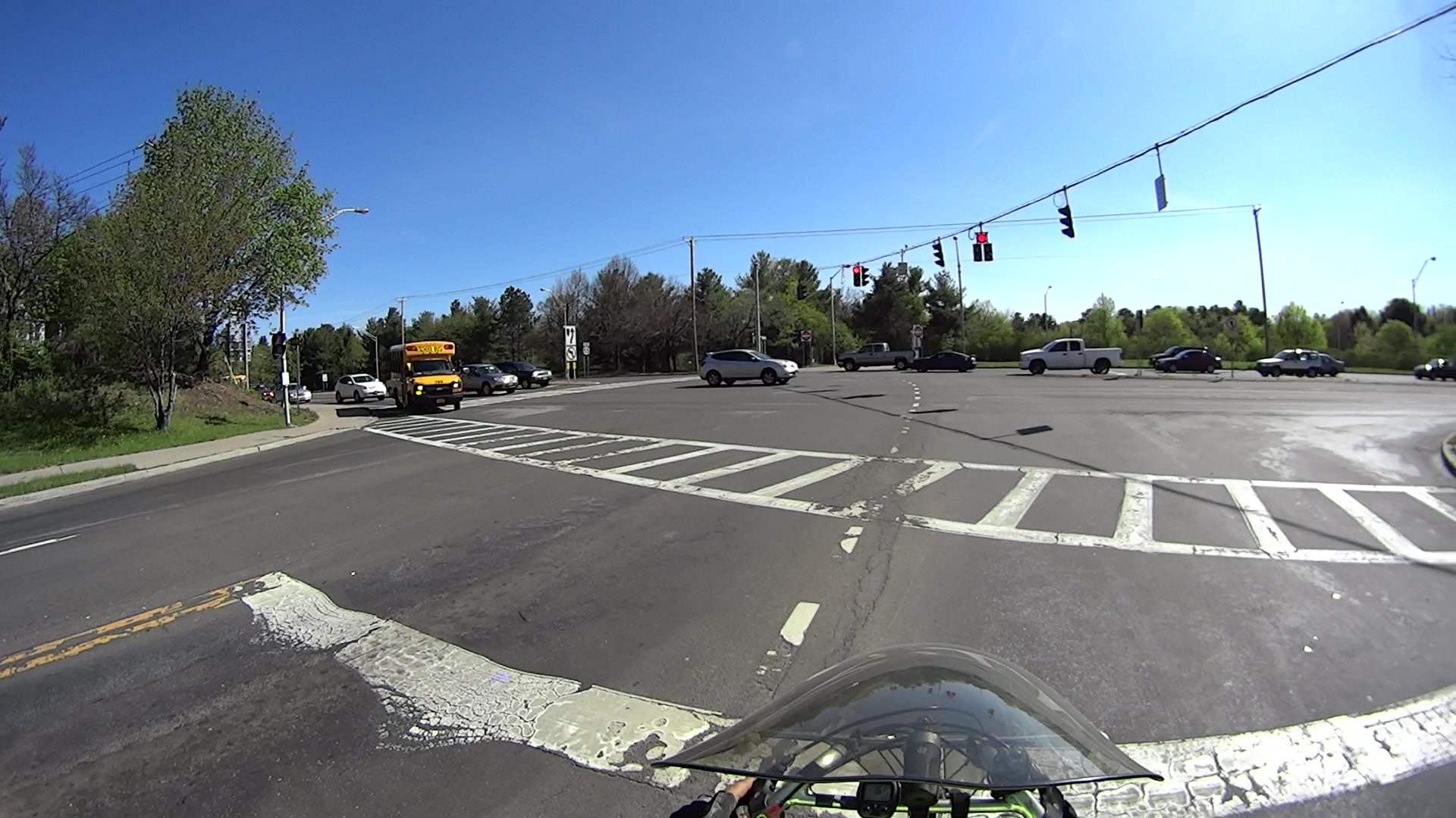 We’re definitely not fast enough off the block; Mary thought she had time for a sip of water. We started rolling less than two seconds after the green appeared, which is as fast as one should enter an intersection around here.