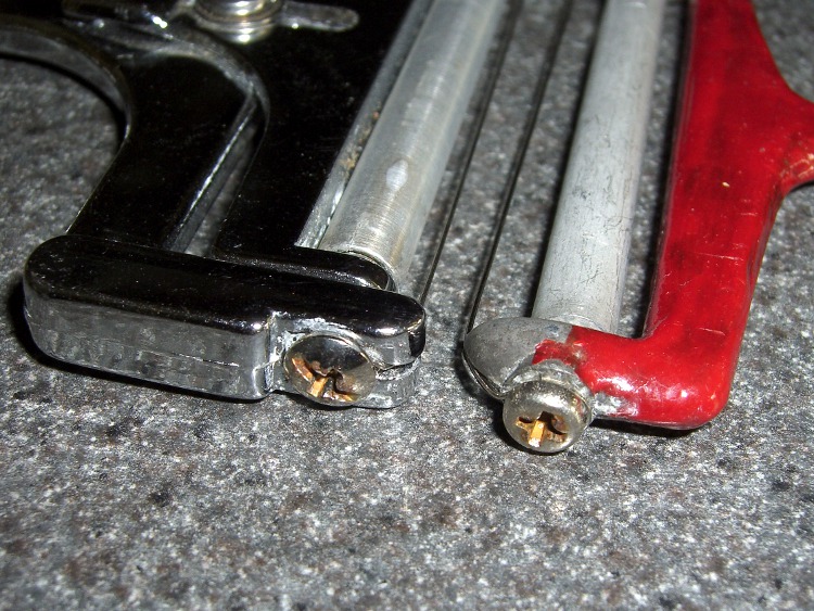 Cheese slicers My ladies favor hard cheeses that are murder on cheese slicers. I just replaced the wires on a pair of favorite slicers, using 0.020 inch stainless wire. That’s thicker than the 14-mil wire they came with, so I’m hoping it’ll last longer.