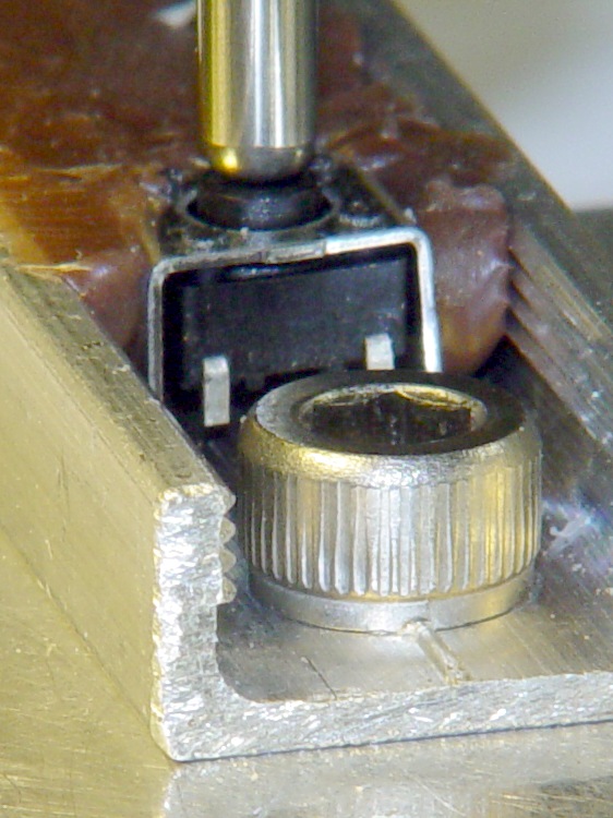 The right pictures shows the situation after probing the switch at 300 mm/min. The switch body is pushed slightly downward from the metal shell, showing that the Z axis drive didn’t screech to an instant halt after the switch tripped.