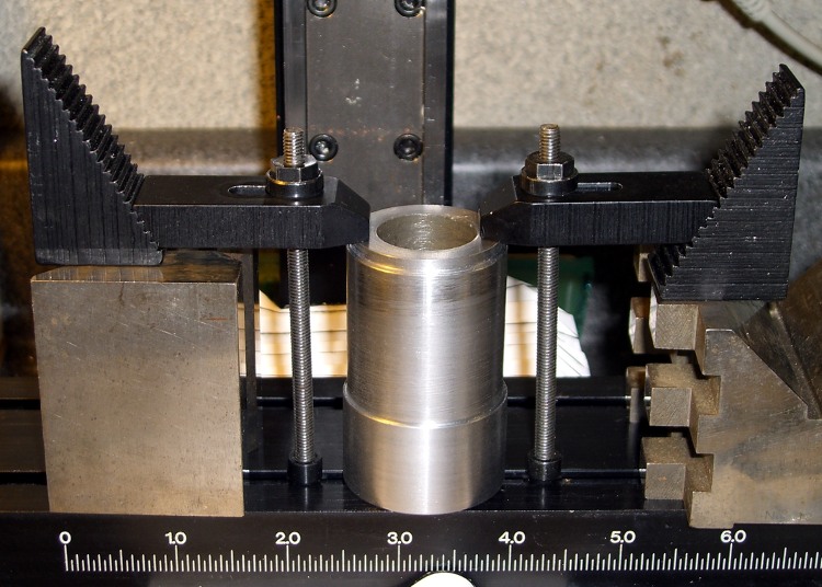 Believe it or not, I found a steel cylinder in my scrap heap that was just exactly what I needed, right down to the 7/8″ bore in the middle. Not only that, it was free-machining steel. Whew!