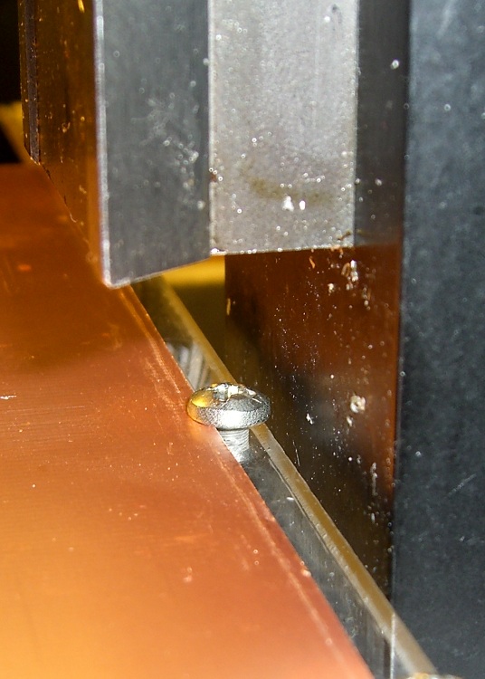 The two end screws protrude through the platen and align it along the rear edge of the mill table