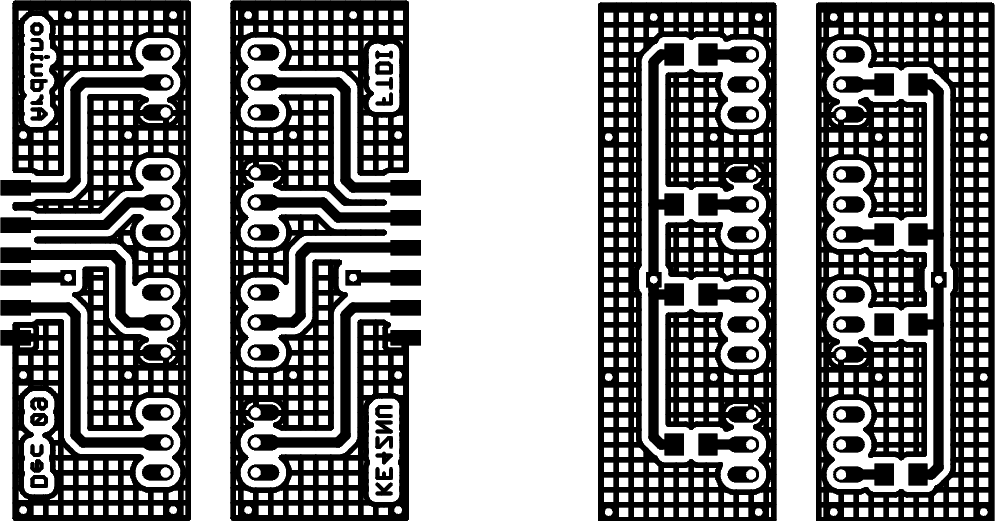 Actual-size copper images. Remember that the top copper is flipped left-to-right here so it comes out properly after toner-transfer imaging.