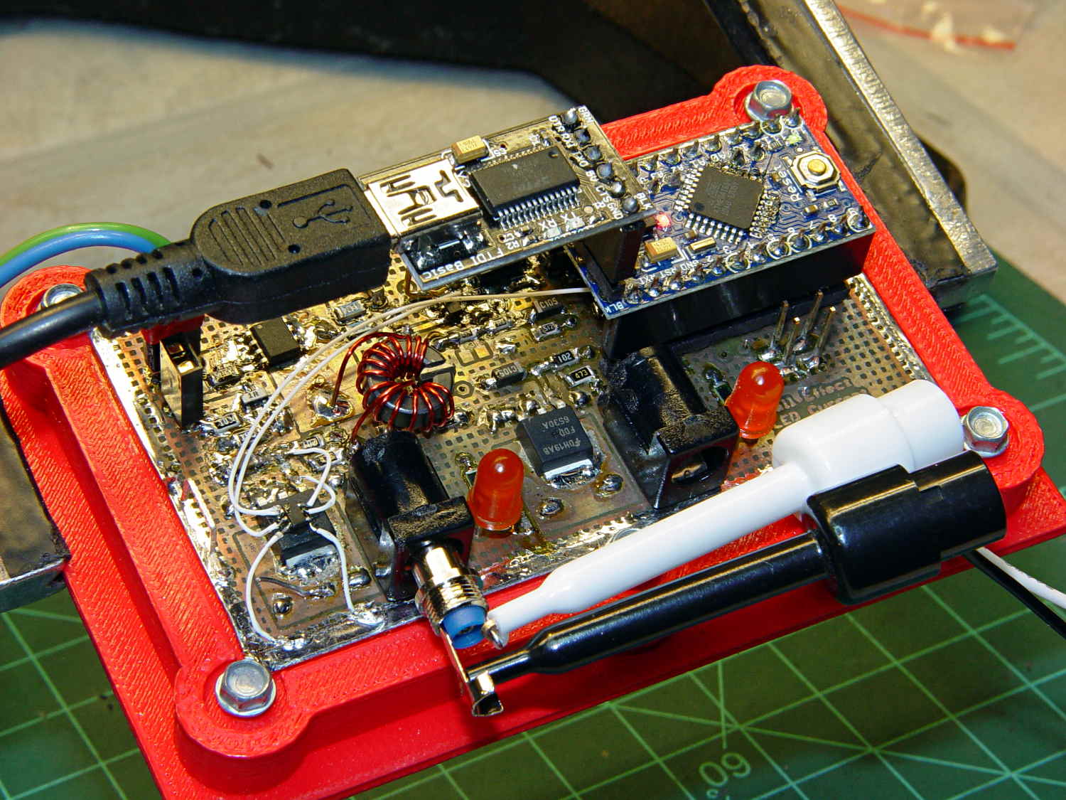 This being a prototype, that involved epoxying a SOT23-6 package atop the MOSFET, with flying wires all over the PCB: