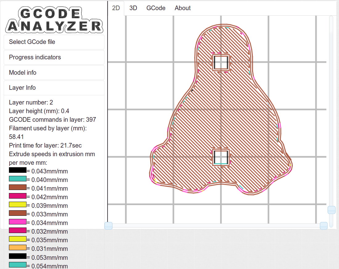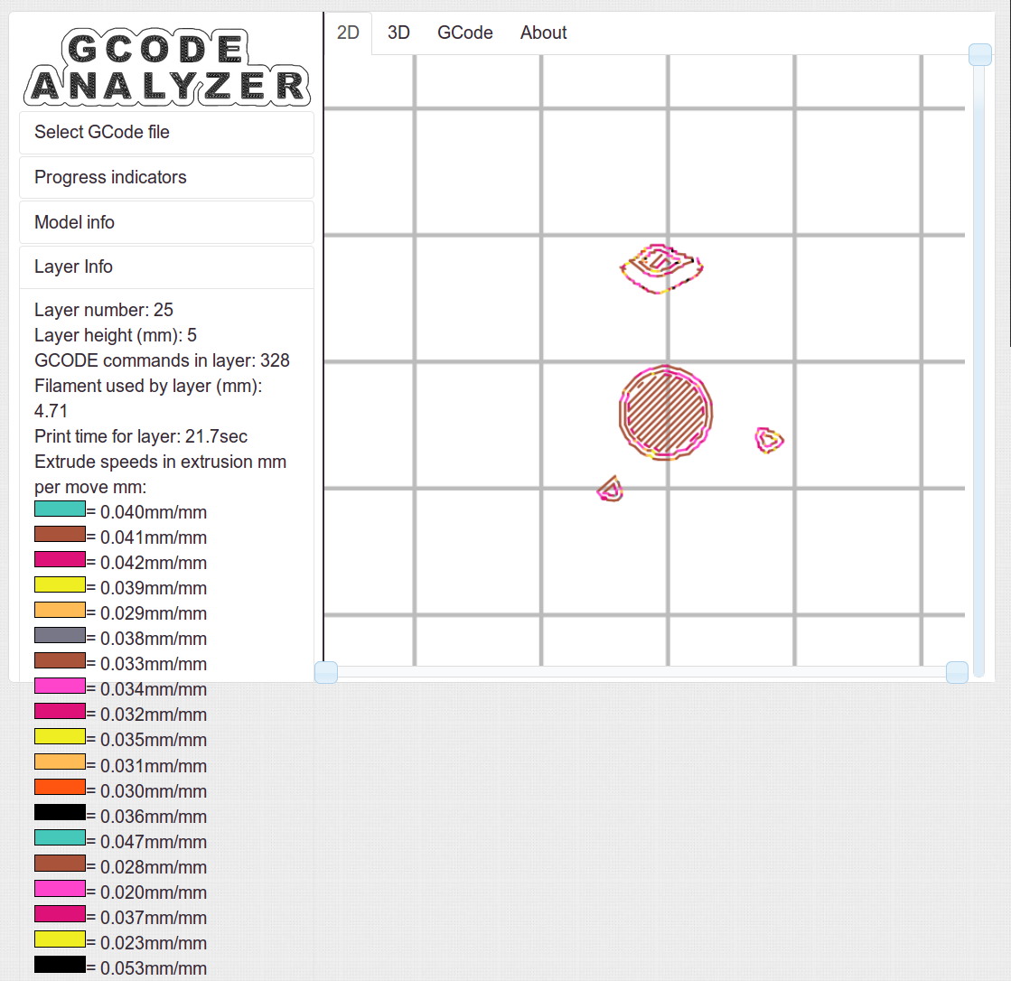 The Gcode Analyzeralgorithm that assigns colors to numeric values tends to produce many aliases, although most of the time you can figure out what’s going on. If somebody wants to dive into the code, I’d like to have unique colors and get the color table sorted in ascending order.