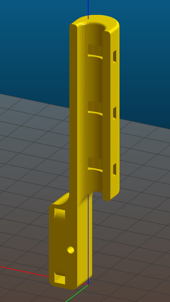| cube([2*ThreadWidth,0.9*Pixel[OD],(Pixel[LENGTH] – ThreadThick)],center=true); | |