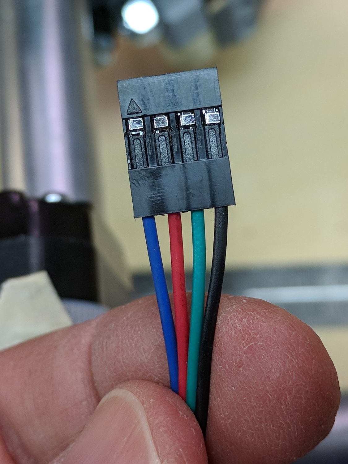 I opted to match the “pin 1” marks on the connectors, because that’s easy to remember, although it puts the pin latches on opposite sides: