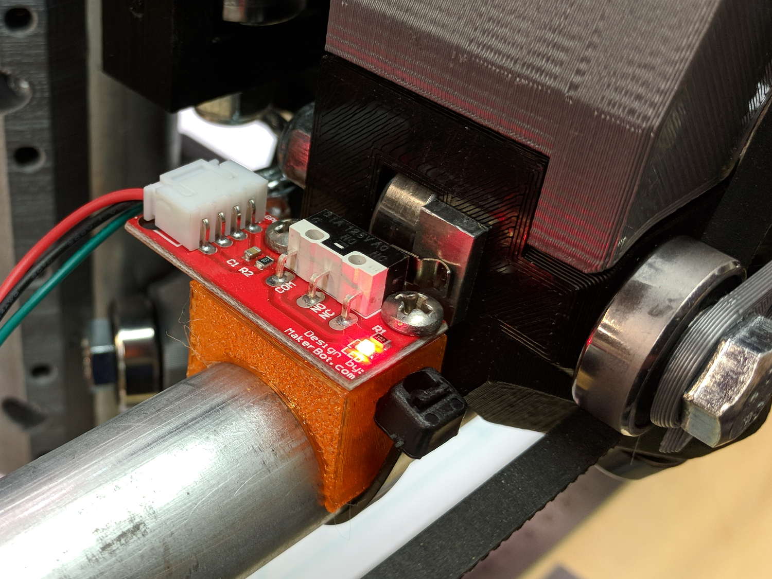 I’m not entirely convinced a PLA stepper mount is a Good Thing, given the warmth of steppers and PLA’s 60 °C glass transition temperature. We’ll see how it goes; obviously, one should not leave PLA parts in one’s car during a hot summer afternoon, either.