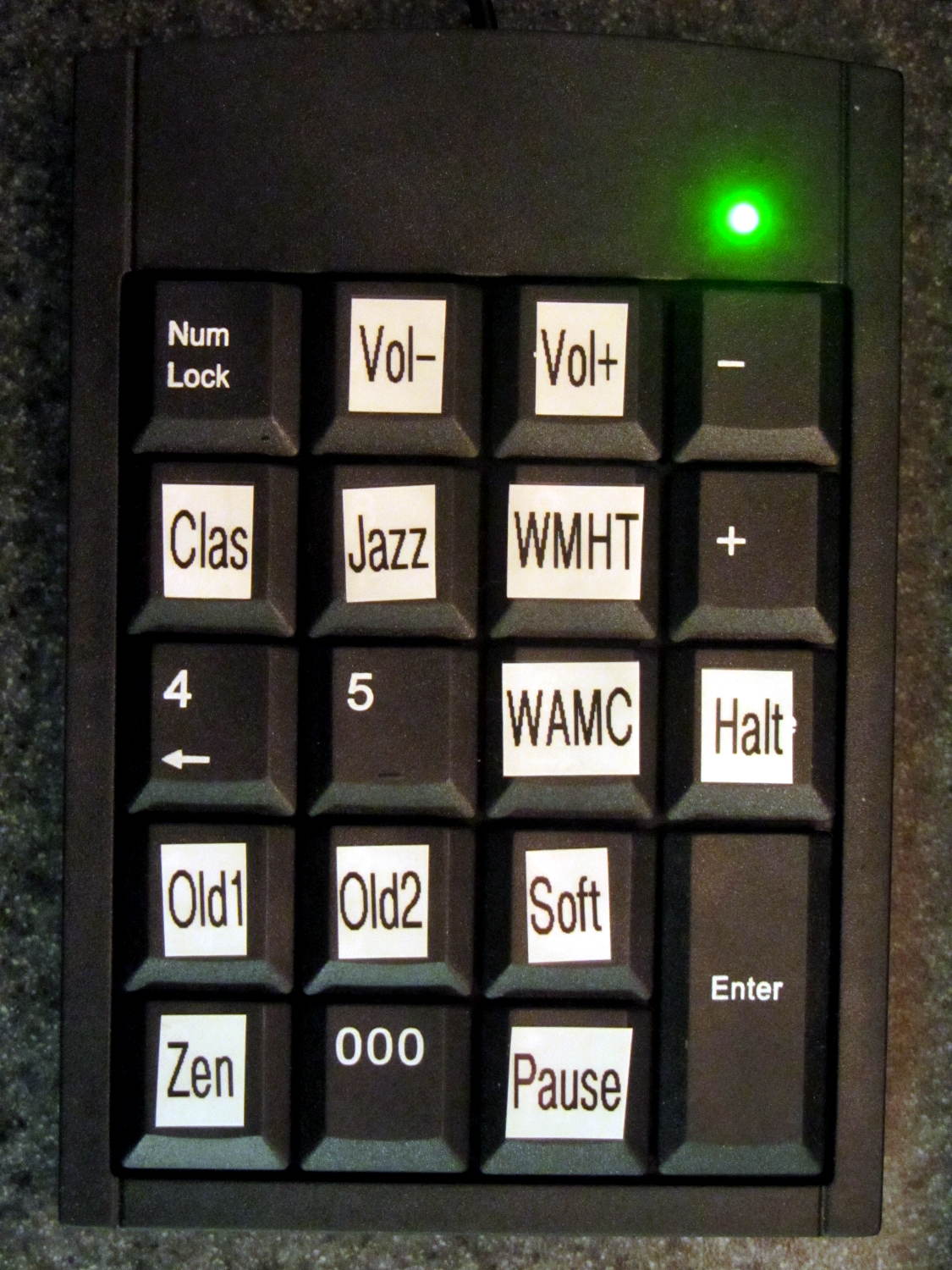 | 'KEY_KP9' : ['WMHT',['mplayer','http://live.str3am.com:2070/wmht1'%5D%5D, | |