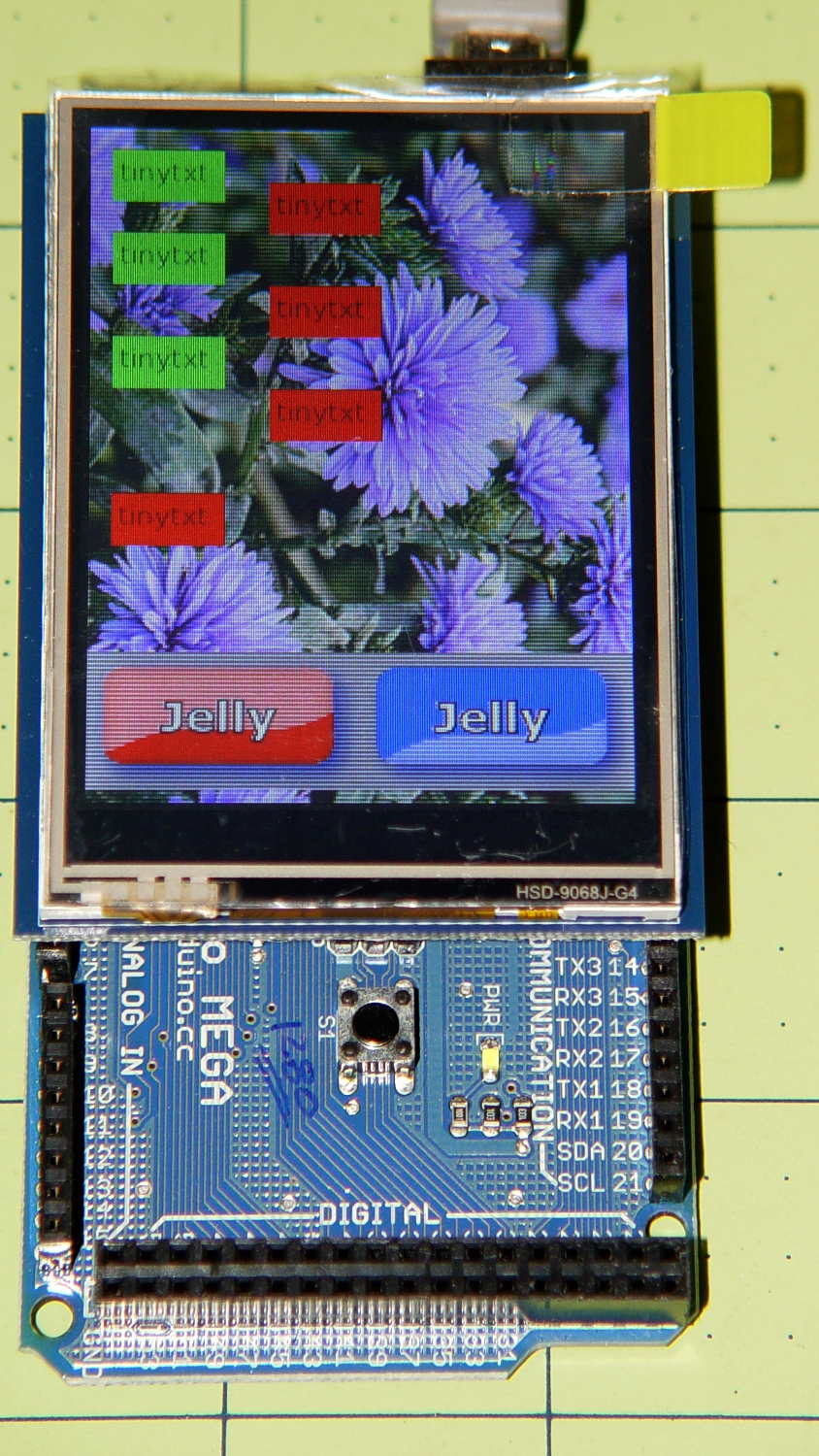 So I gimmicked up some small buttons with GIMP, made two large buttons with ImageMagick, and lashed together some Arduino code based on the Adafruit demo: