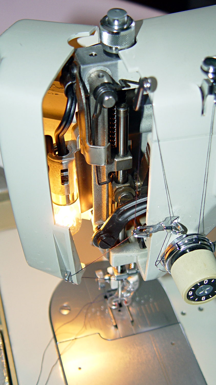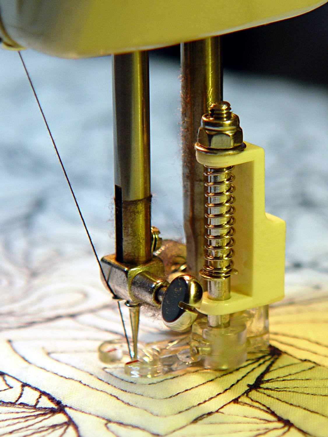 After vigorous and repeated handwashing with gritty cleaner after leaving the Basement Laboratory Workshop, the pedal assembly went back together smoothly and, once again, operates the way it should: controllable smooth low speeds, crazy-fast high speeds, and a steady transition between the two. Mary has resumed quilting up a storm.