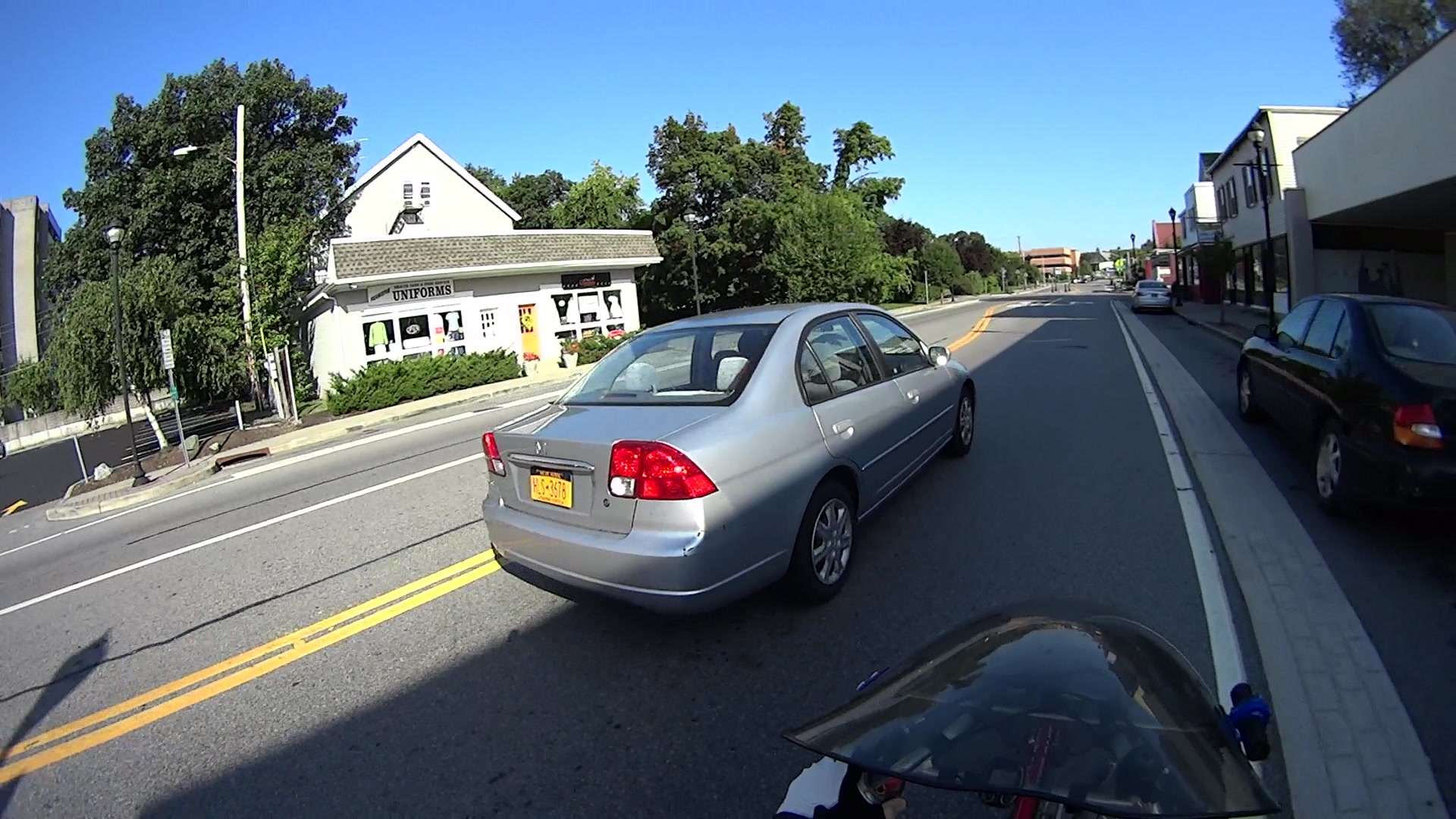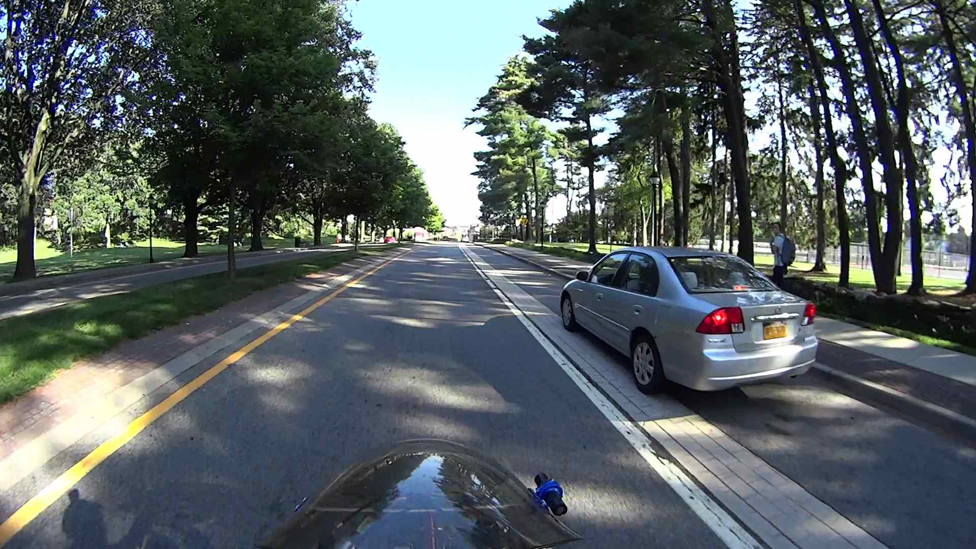 A silver Honda Accord Civic (NY HLS-3678) passed me on Raymond, just before the Vassar Main Gate roundabout, with about as much clearance as one might expect: