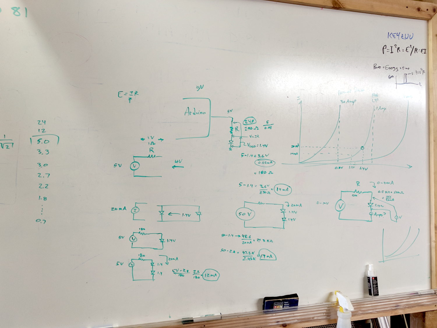 Compute series resistor (500 Ω) to convert adjustable power supply (the digital tattoo box, a lesson in itself) into reasonable current source; roughly 10 V → 20 mA. Find suitable resistor (560 Ω) in SqWr junk box parts assortment, digression into color band reading.