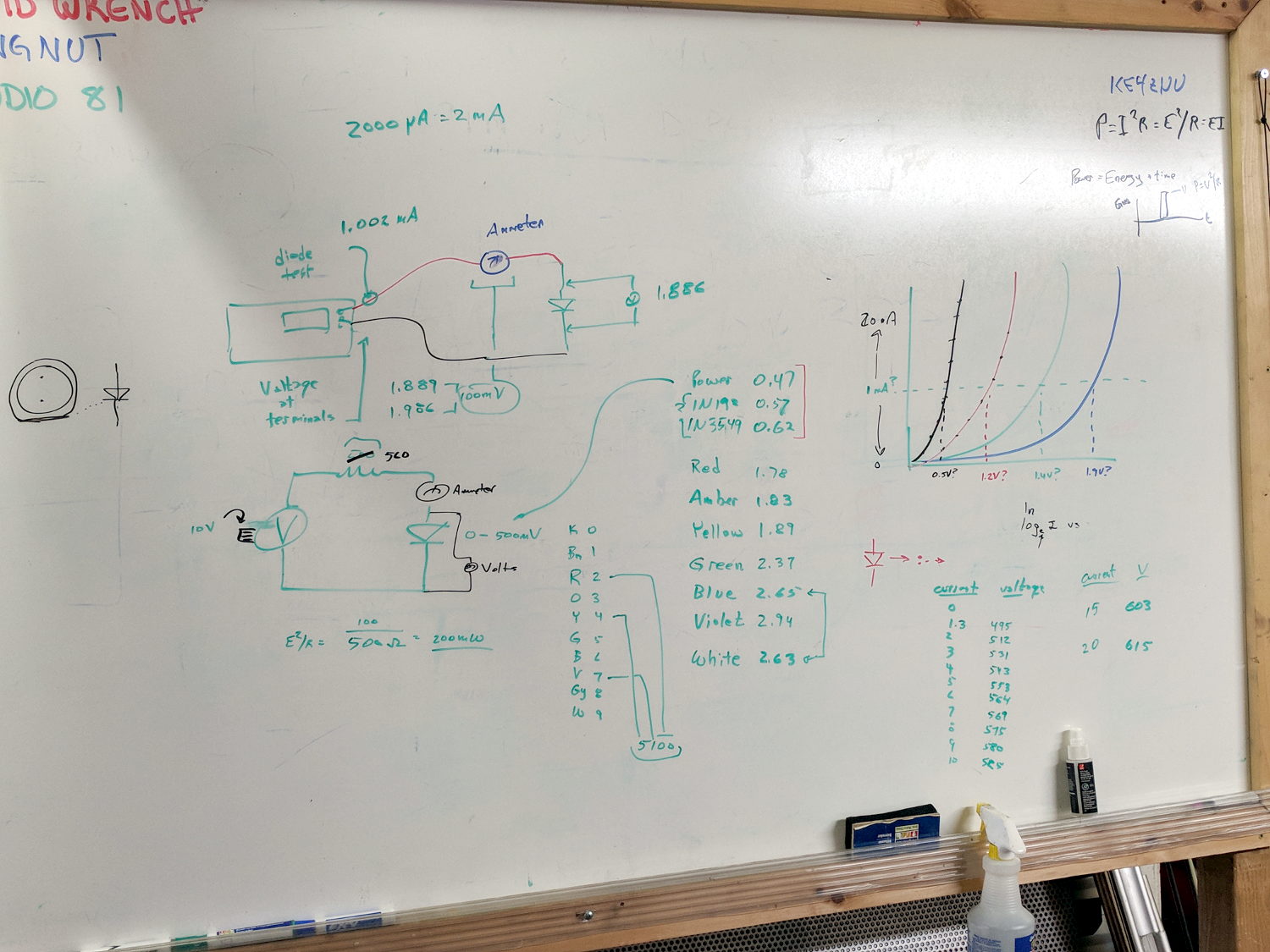 Use Siglent SDM3045X DMM in diode test mode to measure forward drop of power / signal / colored LEDs, discuss voltage variation with color / photon energy. Measure 1.000 mA test current for all forward voltages.