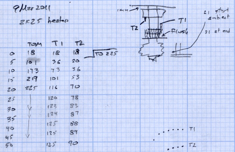 The Thermal Block gives a better measure of the top-of-Tube temperature, because that thermocouple is intimately connected to the Block. The Tube top is about the same temperature, but the previous Heatsink temperatures were lower.
