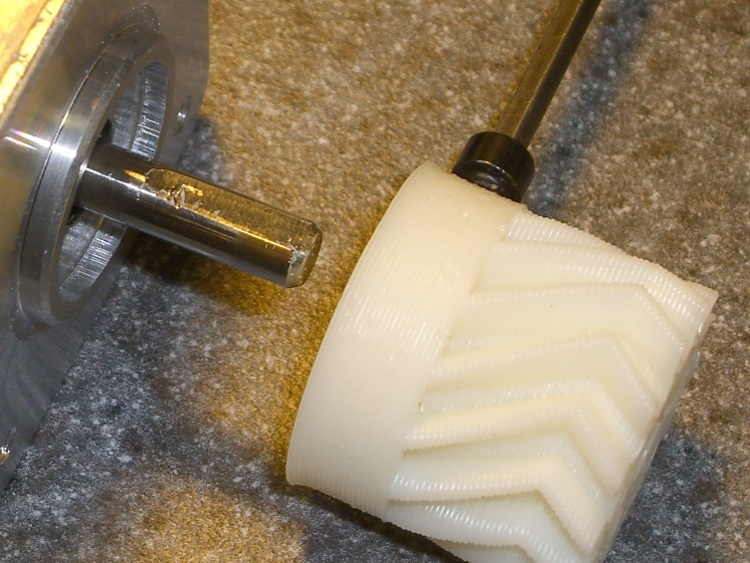 The NEMA 17 steppers I picked up from eBay as part of the stepper extruder upgrade project have round shafts; that’s not surprising, as they came with pressed-on timing gear pulleys. In their new application they’ll sport plastic herringbone gears and those have setscrews.